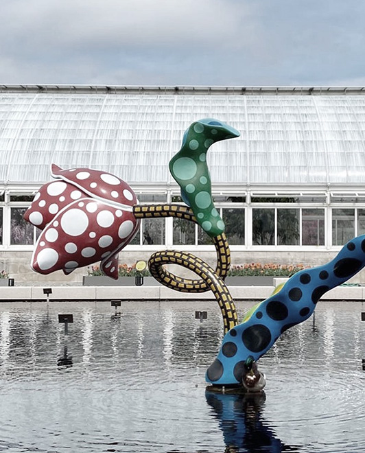 Kusama’s repeating forms explore instinctual structures, inviting viewers into new perceptions of the infinite.